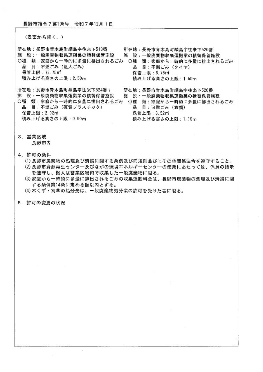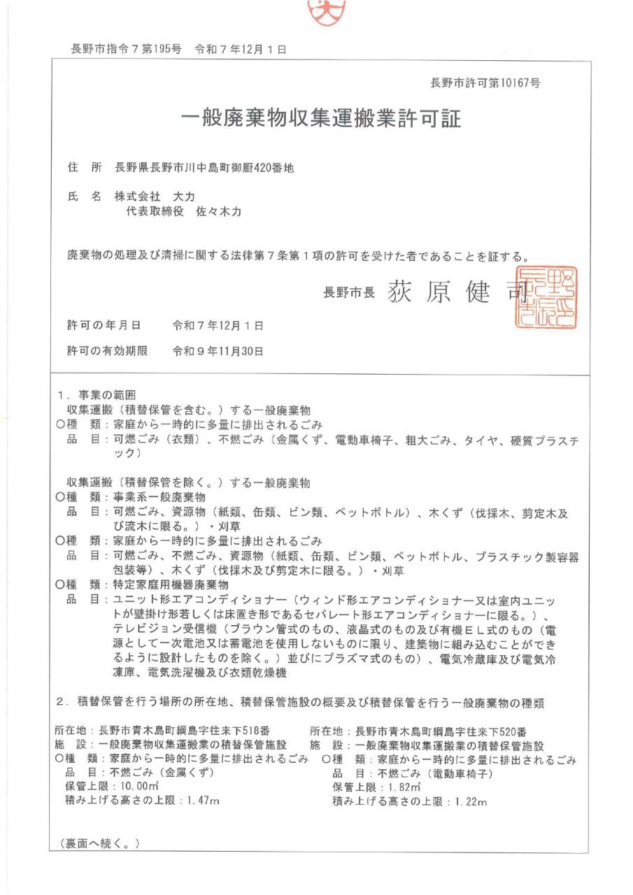 許認可証 Permits and License